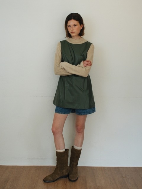 [어나우트] 비건 레더 베이비돌 드레스 그린