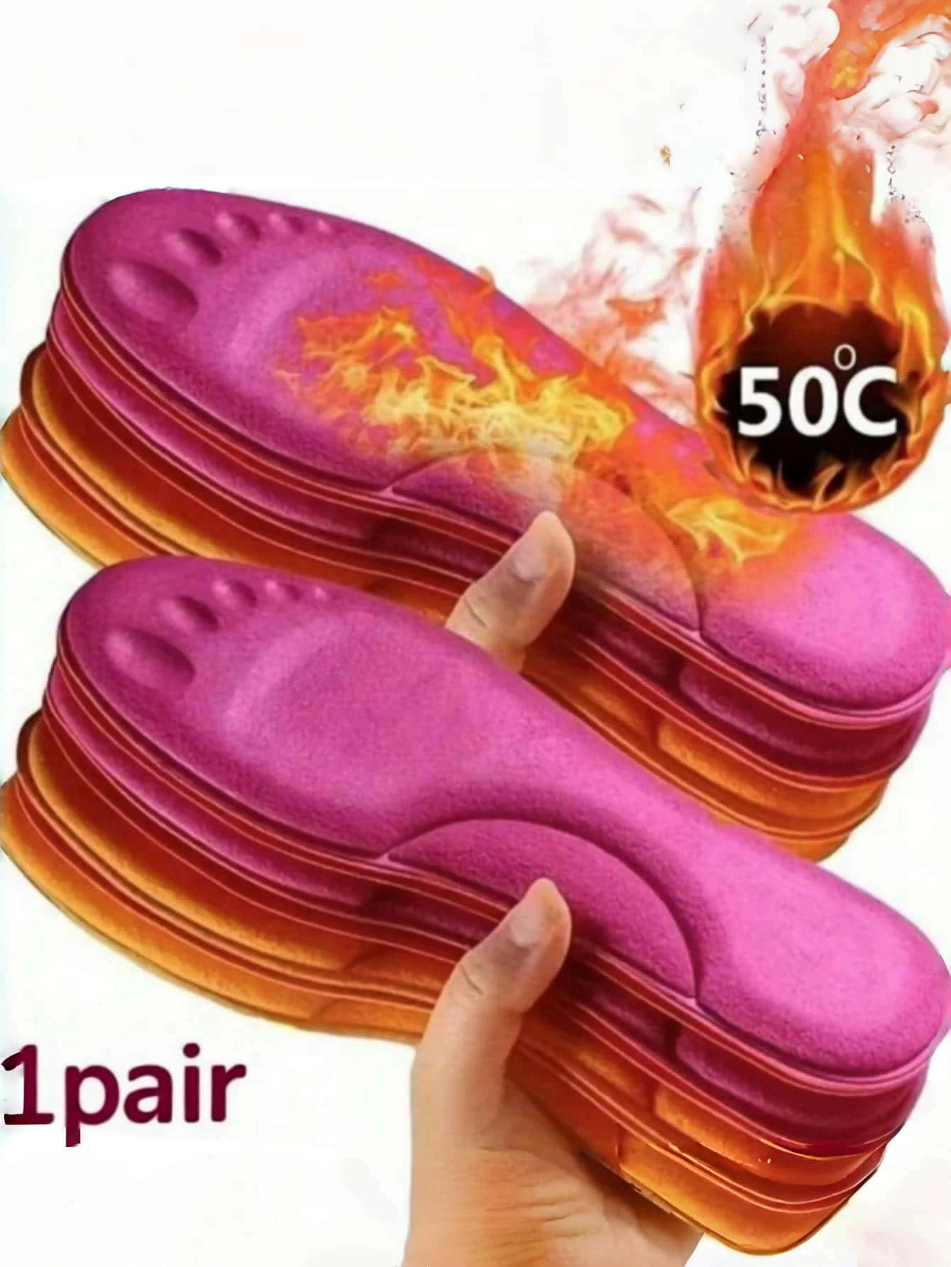 발 마사지 따뜻하고 두꺼운 스포츠 깔창 1쌍, 자체 가열 일정 온도 솔 패드, 부드럽고 편안한 메모리 폼 깔창 겨울에 적합, 세탁 가능 및 재사용 가능