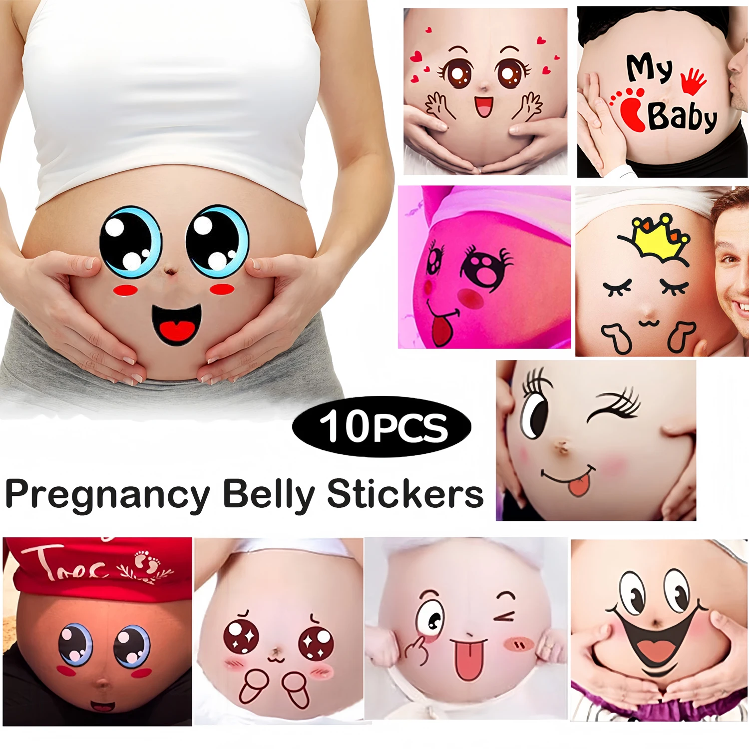 10Pcs 임신 배꼽 스티커, 출산 재미 표현 데칼, 참신 임신 한 여자 사진 소품, 기억에 남는 기념품