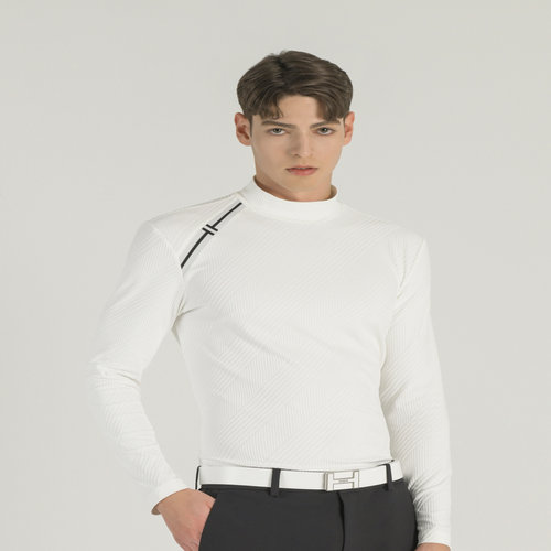 헤지스 골프 화이트 남성 자카드 하이넥 베이스레이어 (HUTS5A111OW)