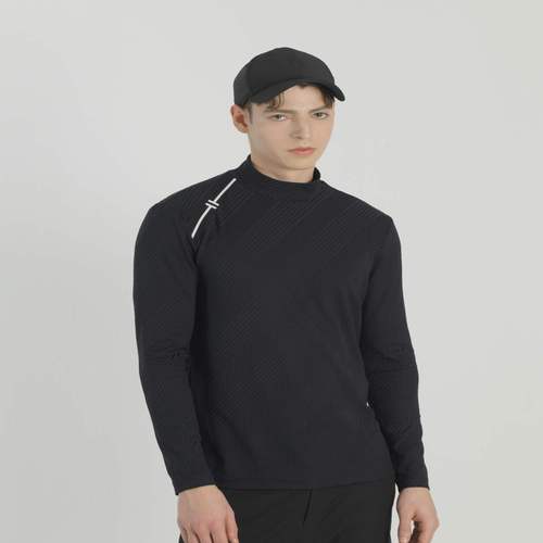 헤지스 골프 블랙 남성 자카드 하이넥 베이스레이어 (HUTS5A111BK)