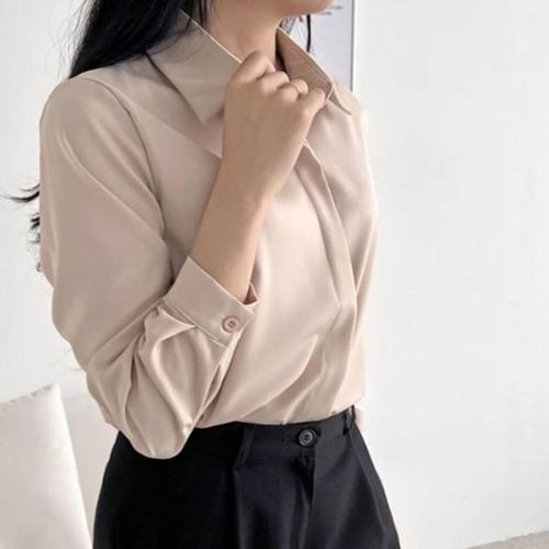 [엄지척]여성 가을룩 코디 블라우스 베이지 기본 카라 셔츠_19642666_667501
