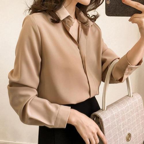 [오너클랜]인기상품 여성 가을룩 코디 블라우스 베이지 기본 카라 셔츠 [WB09C7D_250917]