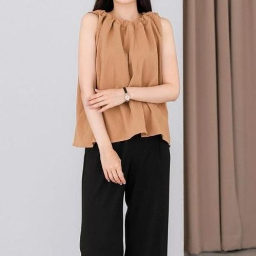 [엄지척]나시티 퓨어 베이지 슬리브리스 리본 블라우스_19660055_667501