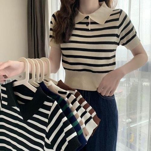 [엄지척]여성 베이직 스트라이프 카라티 반팔 티셔츠 데일리룩_19613060_667501