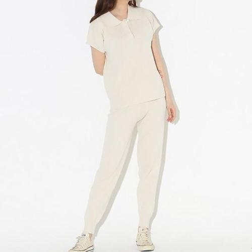 [엄지척]여성 니트 카라티 베이직 심플리 반팔 상하의 세트_19682149_667501