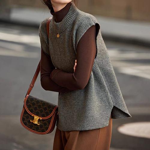 TEMU 플러스 사이즈 여성용 솔리드 컬러 더블 포켓 스웨터 베스트