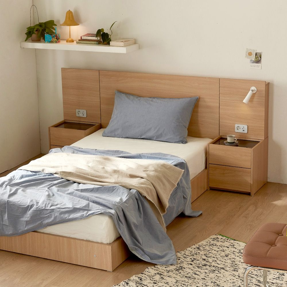 쿠폰가 199,000원 국내생산 로다 일자형 LED조명헤드 통수납침대 SS/Q (콘센트)