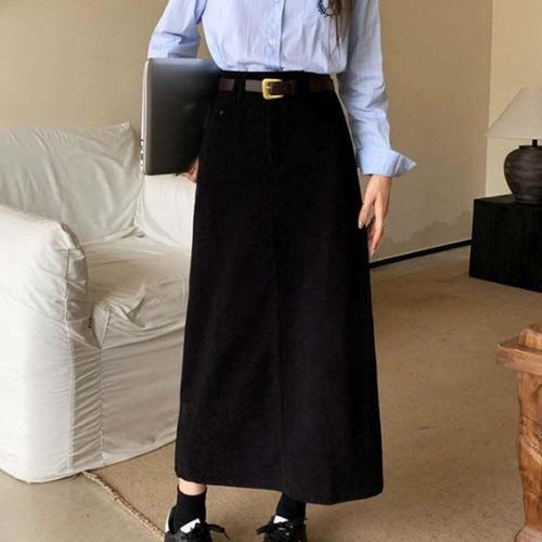 [셀럽하우스]겨울 LRXZ2806 벨벳 트임 골덴 롱 스커트 캐주얼 슬림핏 날씬