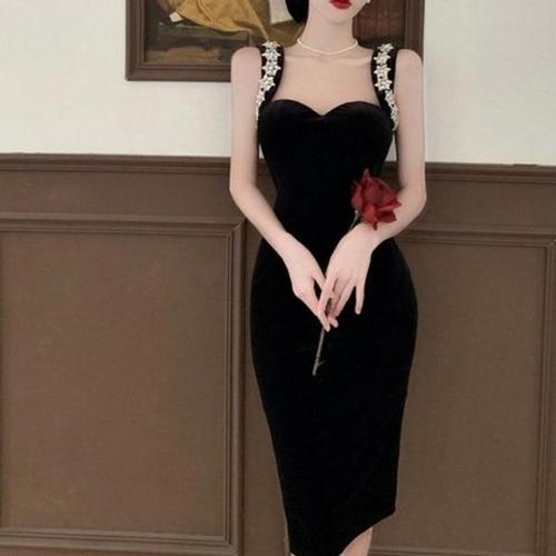 [엄지척]벨벳 롱원피스 파티룩 모임룩 슬림 민소매원피스 민소_19872976_667501