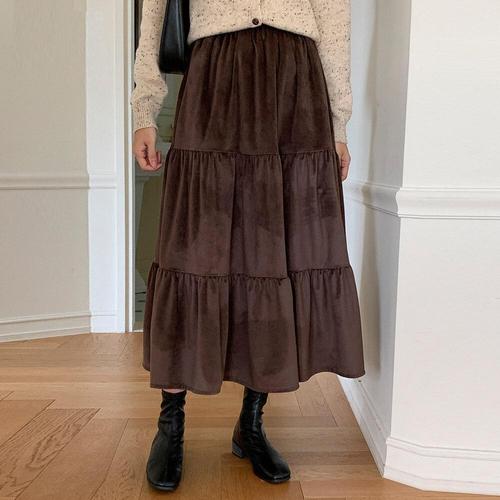 여성 벨벳 스커트 캐주얼 봄 가을 하이웨이스트 치마 루즈핏 기질 빈티지 a라인 벨벳 치마 SYM