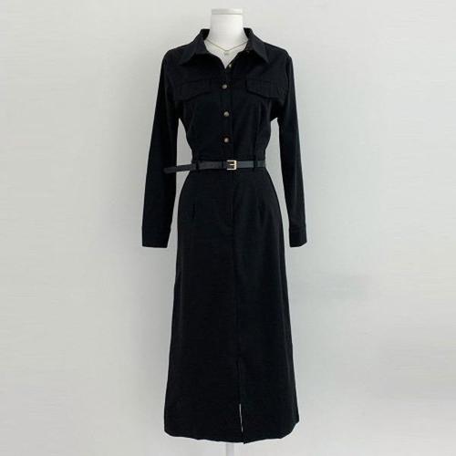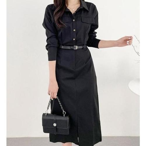 [엄지척]여자클래식하객룩 셔츠롱원피스(벨트포함) 블랙_19909890_667501