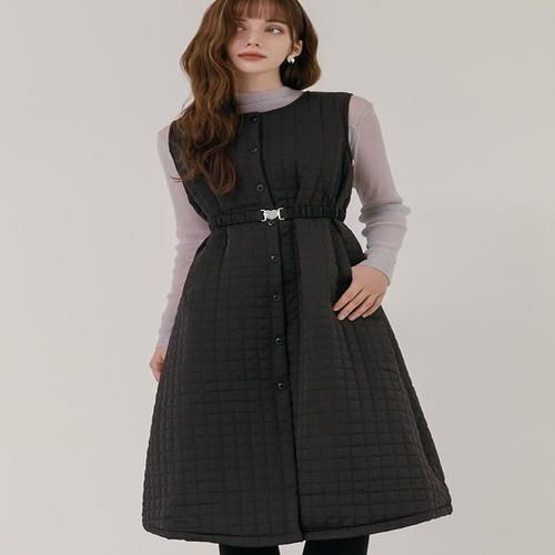 [막스까르띠지오][벨트SET] 스퀘어 퀼팅 패딩 롱원피스
