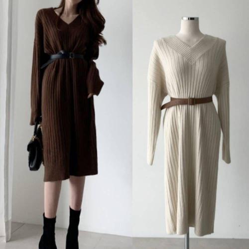 (벨트SET) 페미닌 라인 니트 원피스 PBVFF5F1OP3141