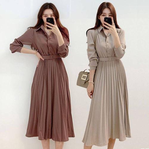 여성 가을 하객 출근용 벨트 셔츠 롱 원피스