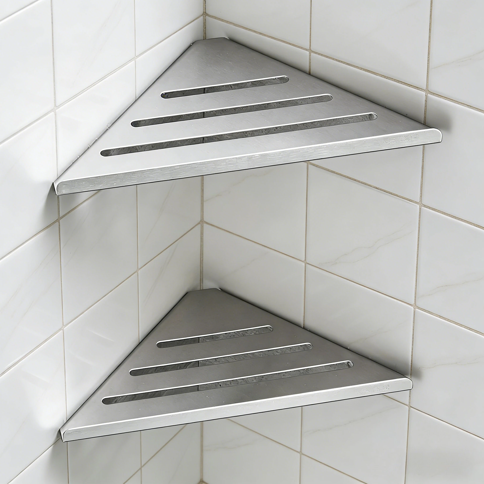 새로운 드릴 없는 304 스테인리스 스틸 코너 샤워 캐디, 고강도 욕실 선반, 샴푸 보관 정리함