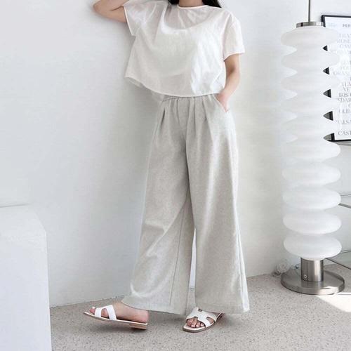 [셀럽하우스]여자 HZRN0465 데일리 린넨 와이드 밴딩 팬츠 데이트룩 슬렉스