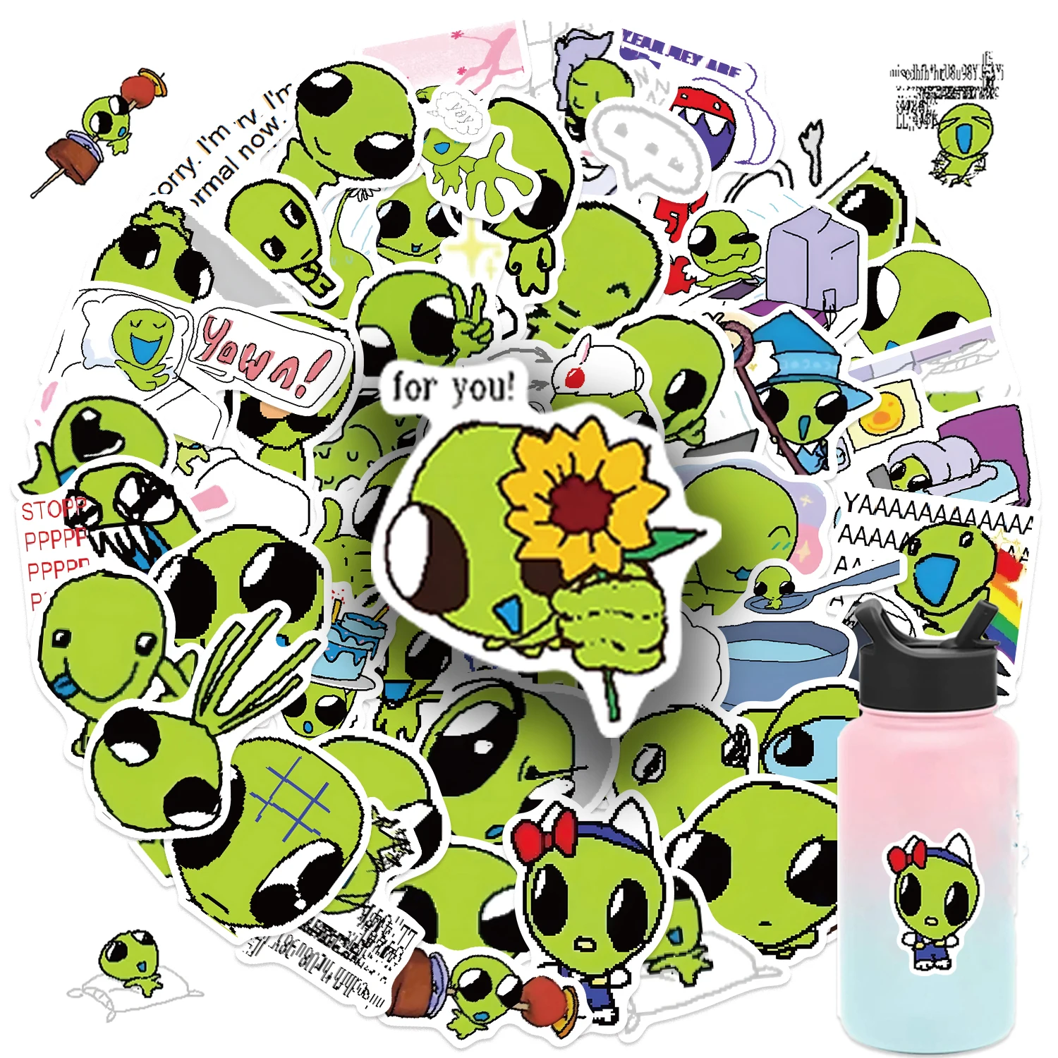 52개 그린 에일리언 스티커, 방수 재사용 가능 PVC 데칼, 노트북, 물병, 스케이트보드, 여행 가방용, 기발한 디자인