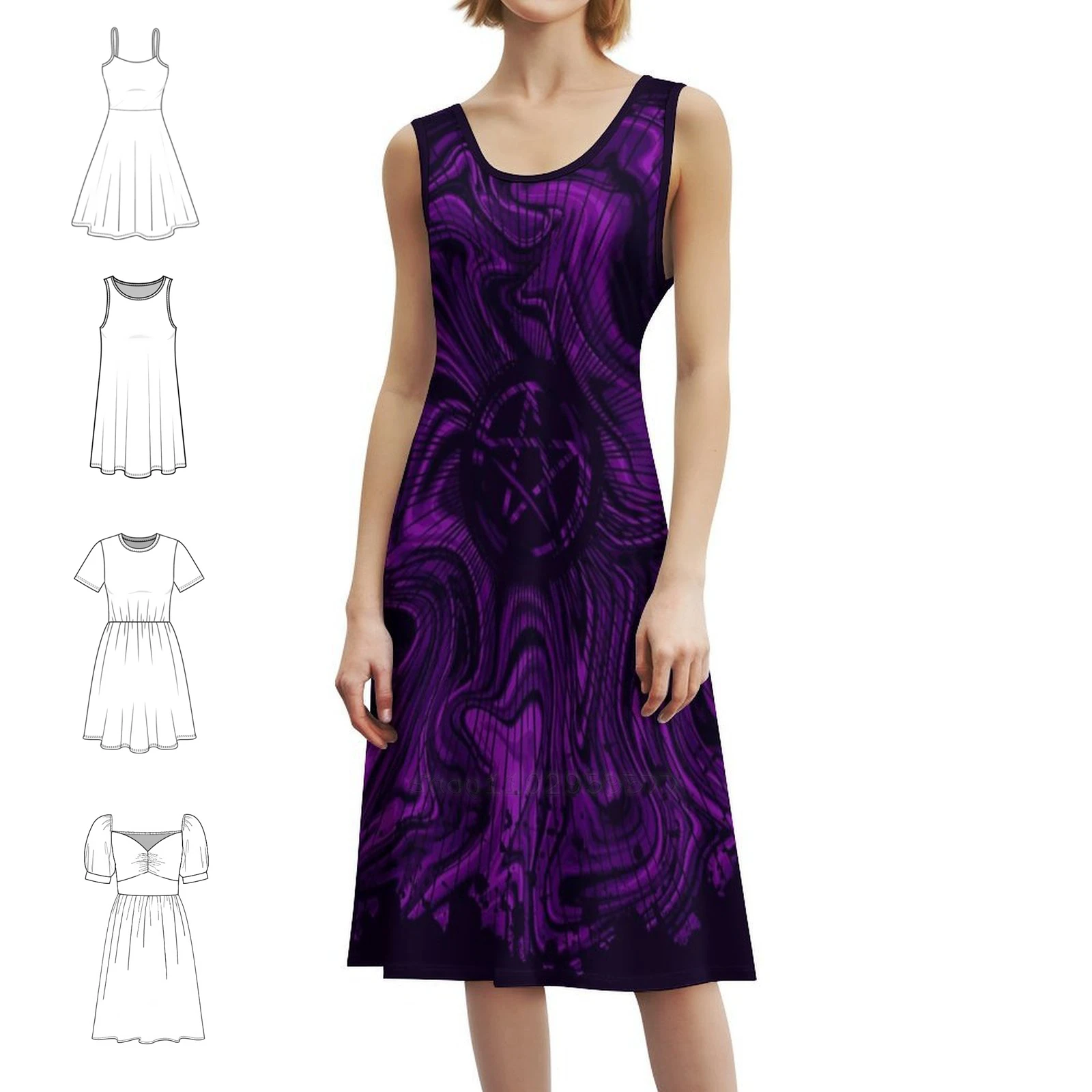 보라색 로고 빈티지 보헤미안 드레스 퍼프 슬리브 또는 여성용 드레스용 민소매 옵션 보라색 뱀파이어 블랙 여성 의류