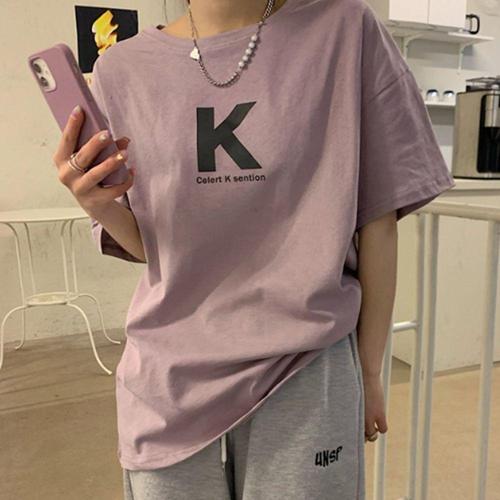 여성 여름 보라색 반팔티 박시핏 오버핏 대학생 외출 WF3892C