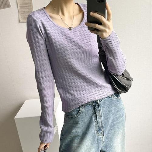 [다잇템][다잇템] 여자 골지 스쿱넥 엷은 스카시 보라색니트 롱슬리브 니트_22759639_588872