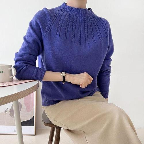 [옷자락]여성 가을 메리노울 케이블 니트 반폴라 보라색