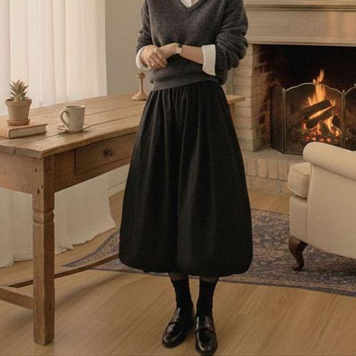 [보리맘]누빔 패딩 벌룬 롱 스커트 겨울 누비 밴딩 치마