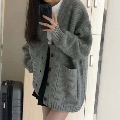 패션스타일 보송보송 가디건 살짝 여성 니트 두께감 스웨터