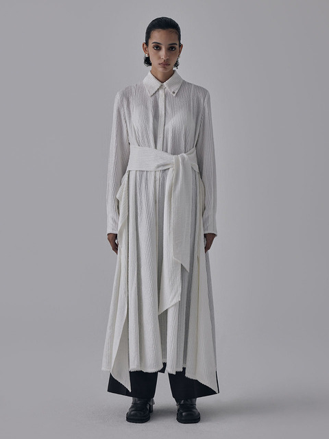 [트리밍버드] 벨보아 스트라이프 스트랩 롱 셔츠 원피스 화이트