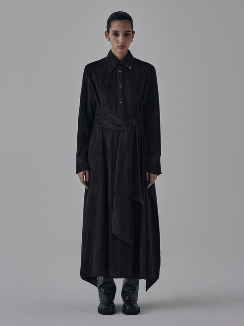 [트리밍버드] 벨보아 스트라이프 스트랩 롱 셔츠 원피스 블랙