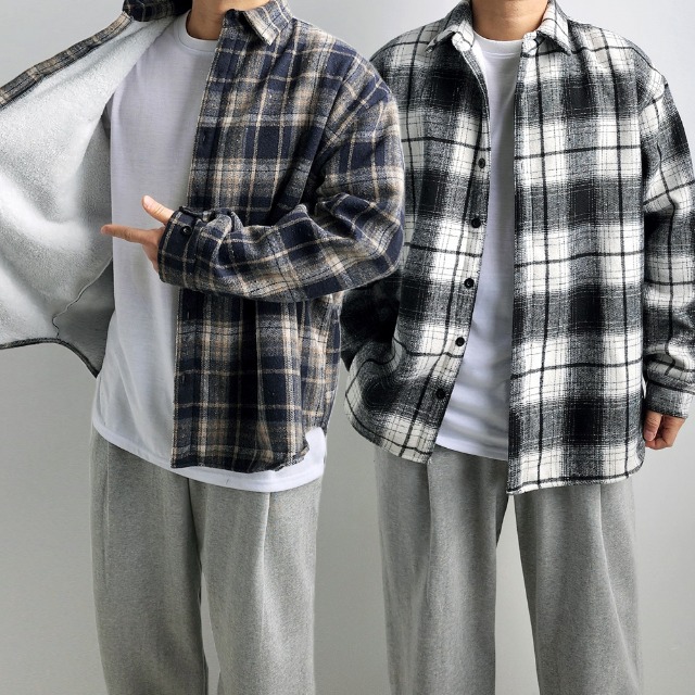 에스미 양털 체크 셔츠 오버핏 남여공용 기모 남방