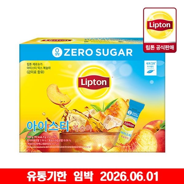 [유통기한 임박] 립톤 제로슈가 아이스티 복숭아 5g 60T