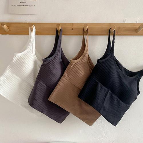 여름 신상 심플 코튼 슬링 캐미솔 여성 소녀 크롭탑 민소매 셔츠 레이디 브라탑 스트랩 스키니 캐미솔 베이직