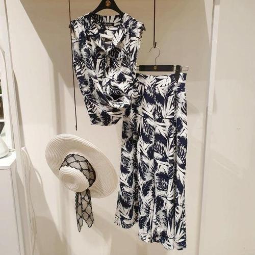 [셀러허브_여성트랜드패션]보태니컬 프린트 나시 와이드 팬츠