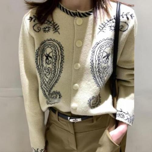 유니크 여성 보헤미안 페이즐리 나염 니트 가디건