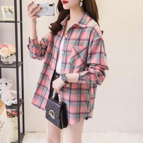 [에이치플러스몰]걸스체크무늬 릴랙스핏 스타일 복고 드레스셔츠
