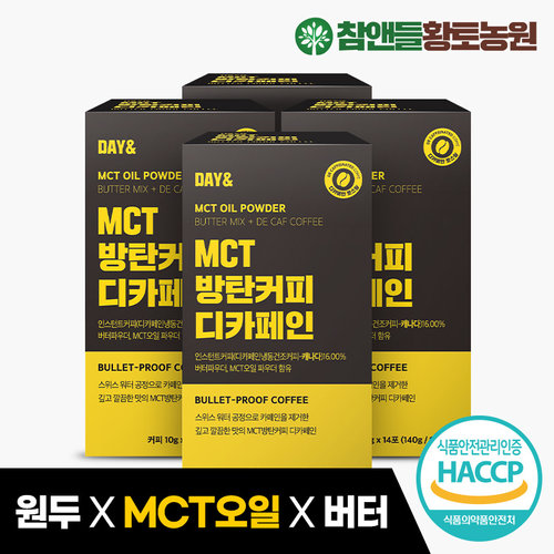 참앤들황토농원 데이앤 MCT오일 방탄커피 디카페인 14포 4박스(총 56포)
