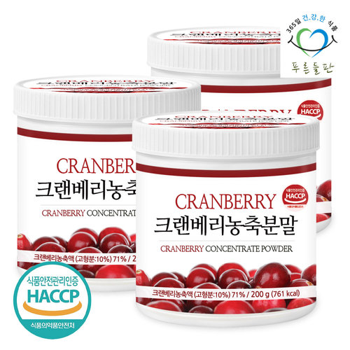 [푸른들판] 크랜베리 농축 분말 가루 200gx3통 크렌베리 파우더 차 주스