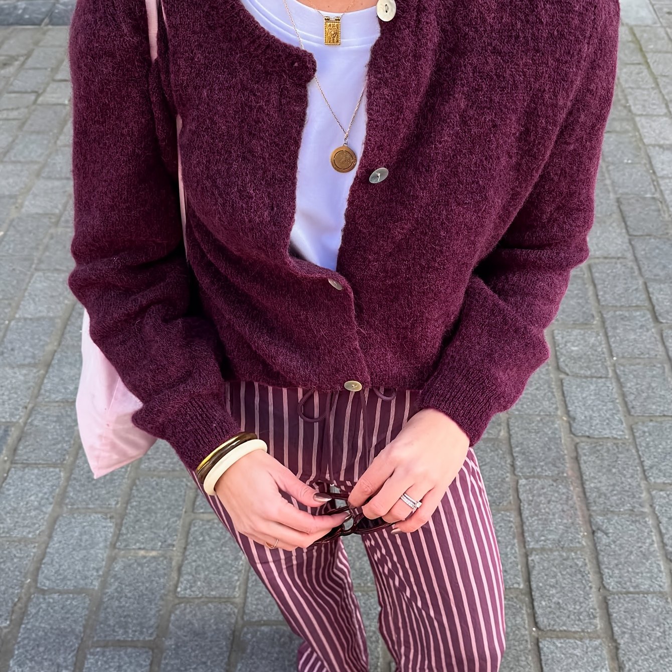 루즈핏 라운드넥 니트 스웨터 2025 신상 여성용 울트라 와이드 골지 밑단 롱 슬리브 숏 가디건