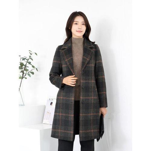 [모슬린]엄마옷 울 체크 카라 누빔롱코트 MQG124722 마담 미시 중년여성 빅사이즈 할머니옷 50대 60대 7..