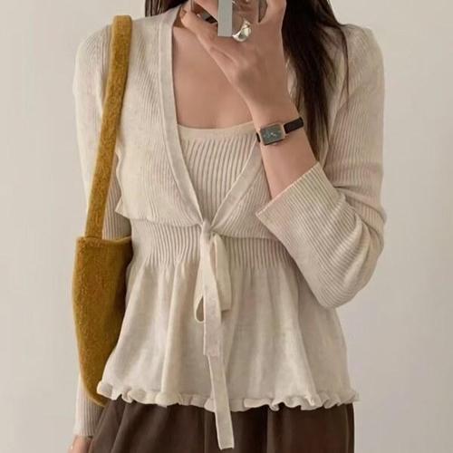 [다잇템][다잇템] 여자 숏가디건 코르셋 페미닌 니트원피스 세트_18873917_588872
