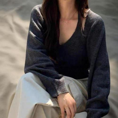 [신상오픈런]여성 키치 스타일 홀터넥 니트 나시 볼레로 카드igan 세트