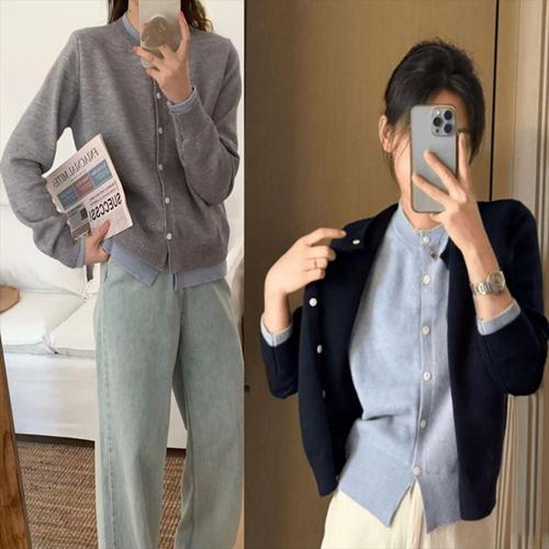 봄가을 레이어드 가디건 더블 회사원 간절기 WFKOJ4A