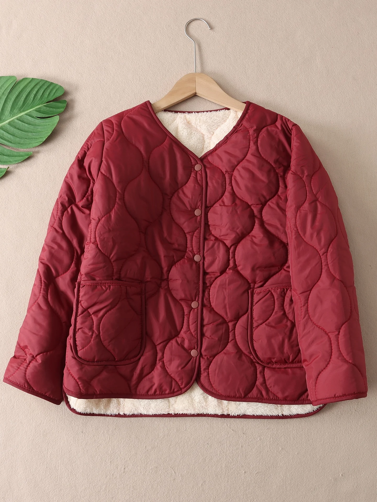 여성용 두꺼운 플리스 안감 브이넥 코튼 재킷 신상 스티치 코튼 방풍 따뜻한 아우터웨어 가벼운 겨울 코트