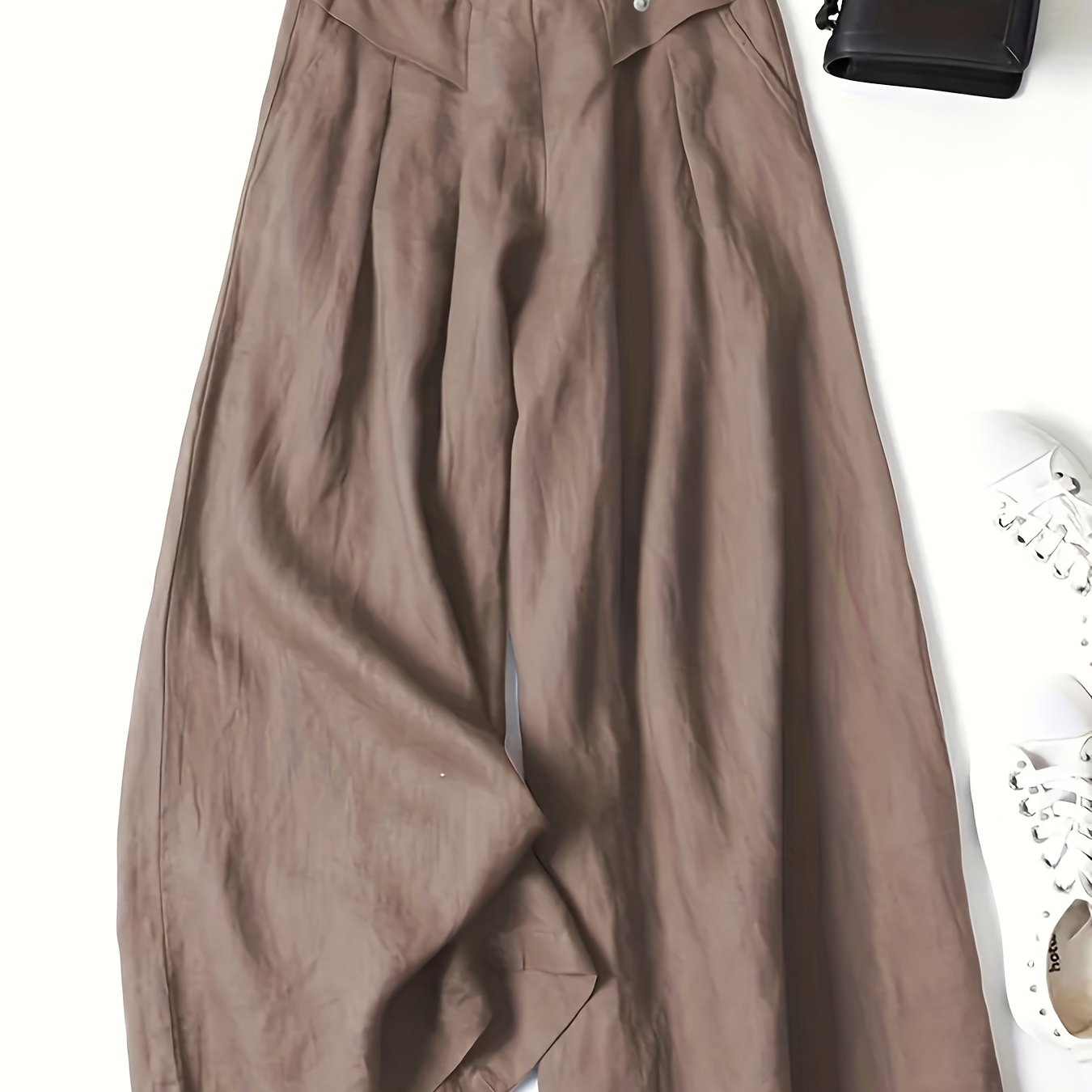 TEMU 여성용 빈티지 와이드 레그 팬츠 - 우아한 악센트와 신축성 허리, 9인치 길이, 봄/가을 야외 캐주얼 바지 (단색, 일반 핏), 비침 방지 원단