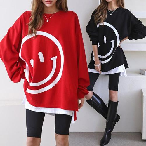 [에이치플러스몰]여자 옆라인 롱티 티셔츠 긴티 여자옷 루즈핏 긴팔 여성봄티셔츠