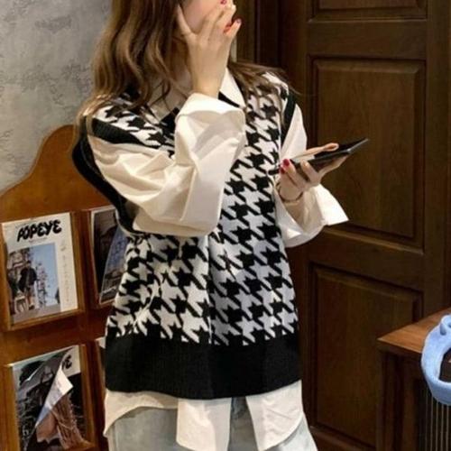 [엄지척]브이넥 코디 하운즈 패턴 여자봄옷조끼 여성베스트 여_19801352_667501