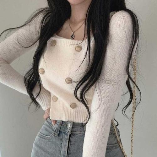[엄지척]여자 봄 데이트 룩 슬림 핏 골지 셔링 긴팔 니트 코디_19679587_667501