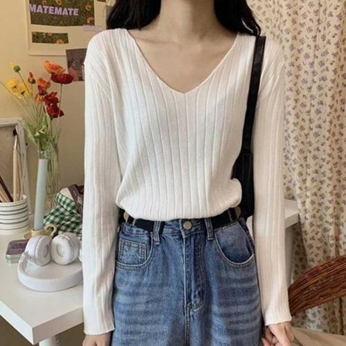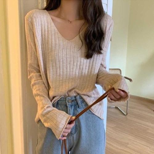 [엄지척]여자 봄 가을 출근 룩 베이직 브이넥 긴팔 니트 코디_19679886_667501