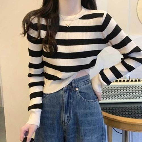 [엄지척]여자 간절기 봄 청바지 코디 스트라이프 골지 니트_19681583_667501
